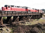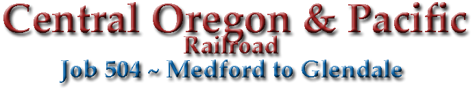 Central Oregon and Pacific Railroad runs between Medford Oregon and Glendale Oregon on what is called "job 504". The return job, Glendale to Medford is "job 505" . Job 504 is tentatively scheduled for 1000 hrs. and arrives in Glendale approximately 1400 hrs. This was pretty much right on time, give or take a few minutes. I followed the 504 there stopping at Tolo, Gold Ray Dam, Gold Hill, Del Rio vineyard, Rogue River, Savage Rapids Dam, Grants Pass, Merlin and Hugo, the last bastion of civilization on the run for another 15 track miles until Wolf Creek, then on to Glendale.