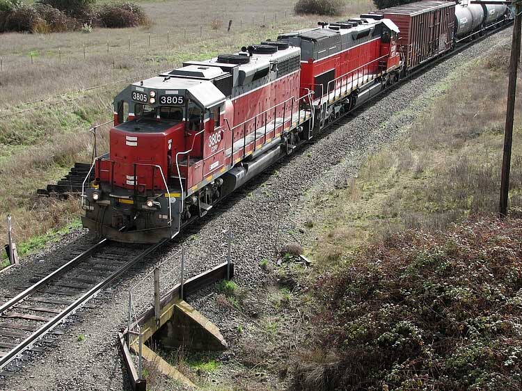 - Two units on today's journey, GP35-3 #3805 and SD40T-2 #4073