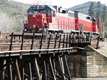 Averaging 17 miles an hour, it is not too tough getting ahead to the next photo-op except just after Gold Ray dam it surprised me by creeping along at 12 mph, then all of a sudden it was going almost 25. The narrow gravel road made it a challenge to get to my next stop, the Gold Hill tressel.