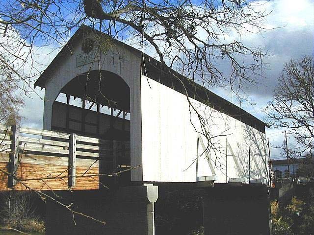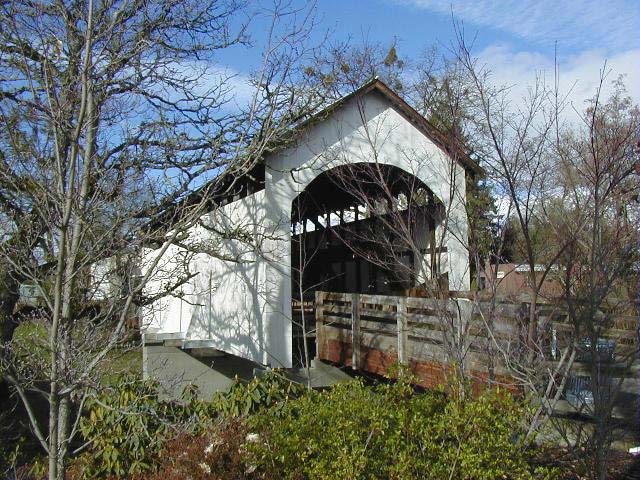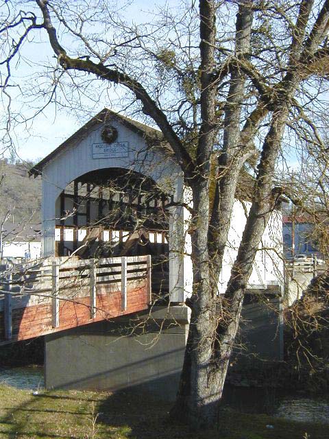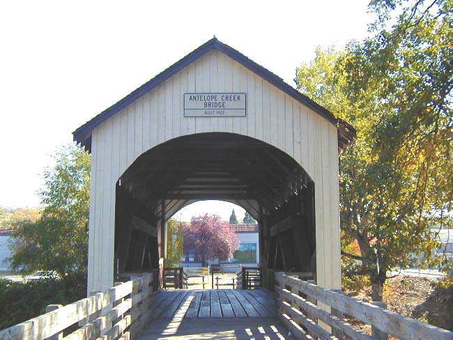 ![]() all photos © R&C Wrede Antelope Creek bridge was built around 1922 on Antelope Creek, about 10 miles from Eagle Point. It was moved in 1987 to it's current location over Little Butte Creek in downtown Eagle Point by the love of the township and the local Historical Society. It was renovated with side windows to let in light for the children walking to the nearby schools. Eagle Point has many interesting historic attractions. See our page about these other sites, featuring the Butte Creek Mill. E.P. is approximately 15 miles north-east of Medford on Hwy 62 towards Crater Lake. The bridge is downtown. Click thumbs for larger image