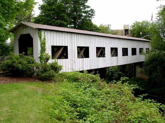 We recently took a trip to Cottage Grove, Oregon where we were surprised to find that there were 6 covered bridges all within a few miles of town. Two in fact, are right in town.