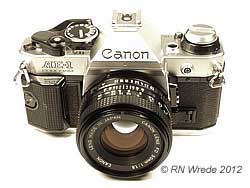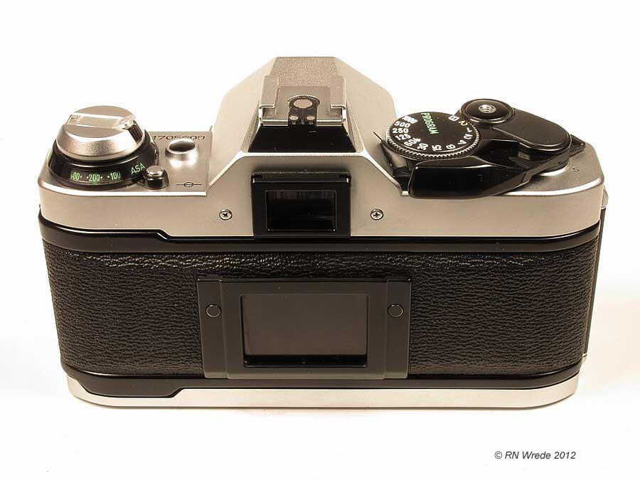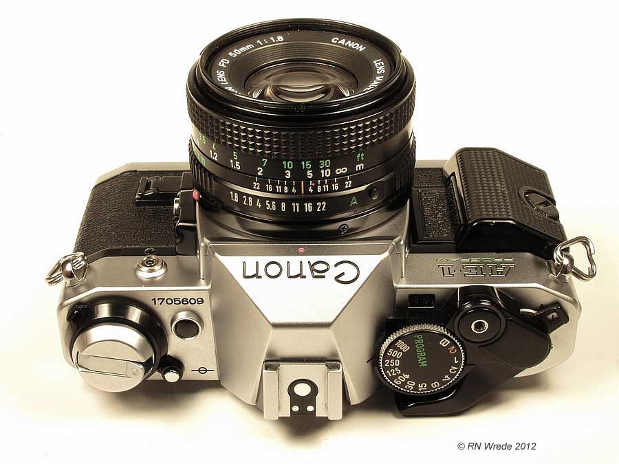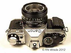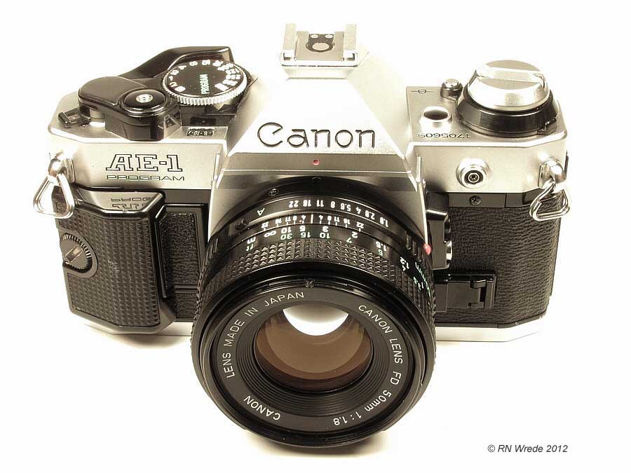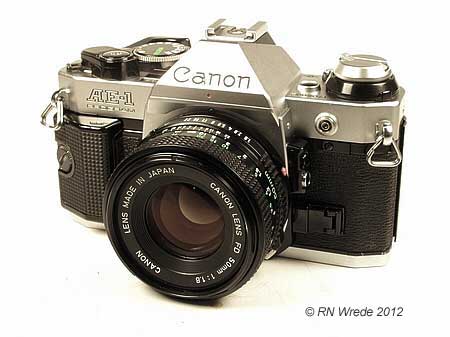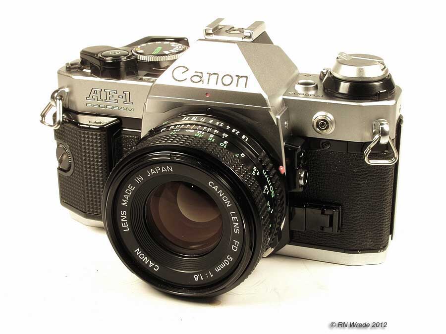 CANON AE-1 PROGRAMTHE CAMERA: Aside from my Olympus OM-1n I've had since 1979, I hadn't really planed on collecting any more SLR's but I found this Jem at a yard sale for $10. I almost didn't get it because the shutter wouldn't fire and I really didn't want a more modern film SLR camera, but it was in excellent shape, the lens is mint and the body has less than normal wear. I figured if it was broken I could salvage the lens and tinker with the body to see what makes it tick, so I plunked down the $10. At the time I didn't know it needed a battery for the shutter to work, but it was in the back of my mind, as my wife's Minolta, being an Auto too, requires a battery to fire the shutter. I got it home and found it takes the same battery I'm using as a substitute (for mercury) in my GSN. After finding a manual online, I saw how to change the battery and put one in. The battery compartment was pristine. To my amazement the shutter worked, but with the what I now know is the common "Cannon Squeal". It sounds like there is a motor drive attached when you click the shutter but it does work. I did get the chance to use a Canon AE-1 one time in high school back in 1978 that belonged to our foreign exchange student. He wanted me to get some pics of him running at the Cross Country meet. I loved how it worked and the results were phenomenal. I wanted one but couldn't afford one. This is the upgraded model that came out in 1981 and has two auto modes and manual. First is fully auto by putting the speed dial to Program and the aperture ring to A. This gives you full auto mode with pre programmed, human input scenarios for every situation except maybe the dreaded dark subject with snow/sand background. There is a Auto Lock button to help with that or adjust the ASA. Second is Shutter Priority Auto by selecting the desired shutter speed and leaving the aperture ring on A. Then the Manual mode is as normal, with a meter reading in the viewfinder of the suggested aperture setting for whatever shutter speed you are on. There is a great write up about this camera on Ken Rockwell's site. FIXES: Aside from a good cleaning there is really nothing wrong with this camera. The aforementioned "Canon Squeal" luckily is a minor inconvenience that can be fixed. I need to get a syringe and some light oil, gun, sewing, camera etc... and there are several ways to go about it. I'm NOT taking the top off this camera. so there is a way to get at it from the bottom. Google Canon Squeal and you will find extensive reports about it. I'll let you know how it goes. Then there is, of course, the light seals. I opted to get a kit from Jon Goodman as there are some foam strips that go in the mirror box as a buffer for the mirror that I can't Jerry rig. This way if I decide to sell it I can do so with confidence and fetch a good price. here's how to contact Jon: put "light seals" in the subject MANUAL: Canon AE-1 Program owners manual- Part 1, Part 2