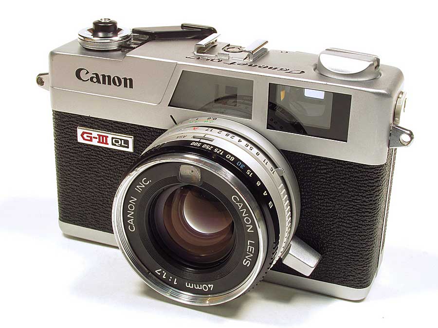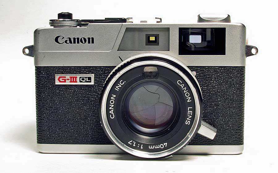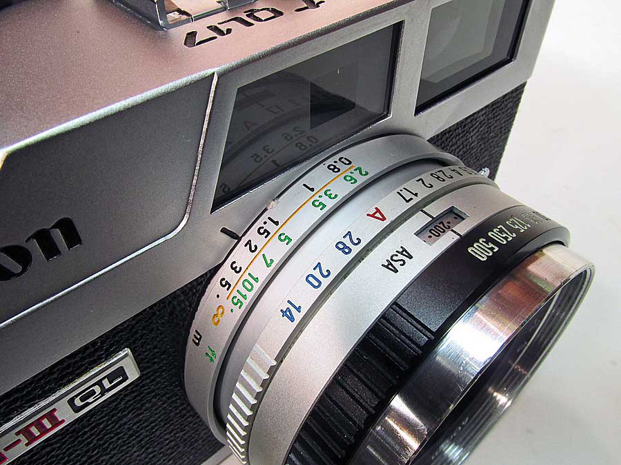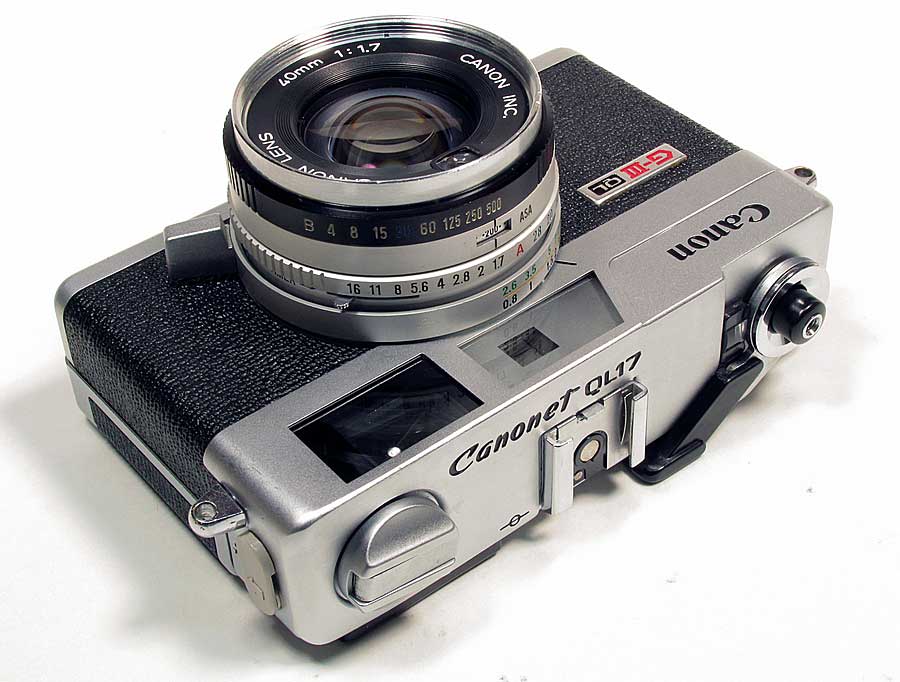 CANON CANONET QL17 G-IIITHE CAMERA: The Canonet QL17 G-III is the third generation (G-III) Canonet from 1972 that was made following a long line of Canonets starting in 1961 with the Canonet. This model features shutter priority Auto and Manual shutter modes. It also features a quick load (QL) film loading system that works quite remarkably. I've wanted one of these for quite some time but they fetch a pretty penny online as they have quite cult following. You'd be lucky to find a good one under $80. Maybe a broken one but you'd have to dig deep into the lens or deeper to repair the wires. I got this one for under $35, it was listed as "Broken for Parts or Repair" but reading the description it said "Auto and Manual shutter works, Rangefinder and Aperture and focus work, it's missing some plastic in the battery compartment and it needs light seals" I can fix that I said, so I bought it. It has a great 6 element 40mm 1:1.7 lens, hence the 17 in QL17. It's a bit larger camera than my Olympus 35DC but not much, it is however the exact same size of my Canonet 28 It's built like a tank, all metal parts except eyepiece/battery check frame, frame counter, thumb piece on the film advance lever and the little knob on the rewind crank. I'm looking forward to using it as it has a great viewfinder with parallax correction that moves in the view as you focus. It hag a great yellow focus patch the seems easy to see even in low light. FIXES: I had to do an unorthodox repair on the battery compartment. A piece had broken off and was missing. I saw that by cutting away the remainder of what was left of the plastic and sliding in a cut section of self-stick foam sheet, the same as I use on the light seals, it made a great bed for the battery contact and the Zinc-Air battery that is a bit thinner than the original Mercury battery fits nice and snug. I also took off the top plate and cleaned the rangefinder optics. This was an easy fix as there are no flash wires soldered to the top. instead it has contacts between the top plate and the frame so it just lifts right off. I have a set of photos documenting the repairs on Flickr of the Battery repair and the Rangefinder cleaning. MANUAL: Canonet QL17 G-III Manual