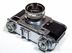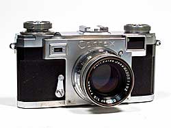 ZEISS IKON · CONTAX IIaTHE CAMERA: My 1951 Zeiss Ikon Contax IIa with a 1946 post war Carl Zeiss Jena 5cm 1:2 Sonnar lens. Cross this one off the bucket list! Sometimes a gamble pays off... twice. I took a chance and got this Contax IIa on auction for only $48! It had cosmetic problems and the slow speeds and self timer were sticking. It ended up being in very good condition on the inside and after I performed a mini CLA on the top end, slow speeds escapement and self timer it is working like a champ. Another gamble was the lens. A 1946 Post War Jena 5cm 1:2 Sonnar from East Germany. I say it was a gamble because it was from Russia for one, and two, it looked funny in the pictures. I Googled 5cm Jena Sonnar and it didn't look like any in the search results. It was revealed in an online forum that it wasn't a "Frankenstein" lens but it was indeed a genuine Post war Jena with the Aluminum casing. And it was told to be a very good lens at that. I couldn't hit the Buy It Now button fast enough. I only paid $85 so it was a gamble I could afford. FIXES: As I mentioned above it was in need of a CLA. I wanted to do the work myself and luckily I only needed to clean the top end. On a Contax IIa or IIIa, it is quite different from the older Contax cameras of which I was familiar with. But it is both a good thing and a bad thing in that (good thing) the slow speeds from 1/100 on down are all on one very easy to remove and clean escapement. It is actually called the "medium speeds escapement". Speeds of 1/250 - 1/1250 are also easy to clean as it is a series of linkage connected to the shutter speed dial via a speed cam. In most cases a good cleaning of these areas is all that is needed. The bad thing is, in order to get at the shutter itself you need to completely dismantle the camera, this includes removing the smaller rangefinder window and it will need a vertical RF adjust after reassembling. The shutter ribbons are two parts now instead of just the one set as on the older Contax II and III. There is the ribbon and also a "string", these both need to be exact in their assembly or things can go wrong. I got a plating kit online and touched up some rust spots on the chrome, mainly around the face plate. Here is a sample photo taken with this camera MANUAL: There is an online users manual here. [Camera Home] [SLRs] [Rangefinders] [Viewfinders] [TLR] [Meters] [Gallery] this site owned and maintained by R.Wrede,© all rights reserved. |