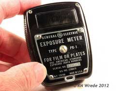 GE EXPOSURE METER TYPE PR-1THE METER: I recently got a great deal at an estate sale when I got this 'General Electric Exposure Meter Type PR-1' from the late 1940's to early 1950's for $2.50! I didn't care if it worked or not, the case is near mint, or as close to it as you can get for something 60 years old. I'm talking just one tiny blemish on the main name plate on the back and the bakelite case looks like it's only been used for a couple times out. The needle though, had no response so I was hoping it was the type that took batteries. If not, no biggie, it's a cool collection piece. I got home and looked it up, shoot, no battery needed. I got curious so I opened up the back and noticed the outside magnet was shoved up against the galvanometer. I drew a crude diagram in MS Paint to show what I did.