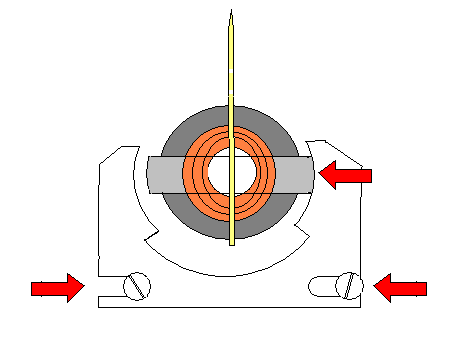 Above: the top red arrow shows the magnet shoved over to the left against the needle galvanometer. It must have been dropped but the case shows no damage from a drop. The bottom arrows show the screws I loosened to slide the magnet over. Below is after the fix.