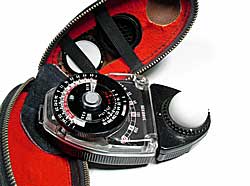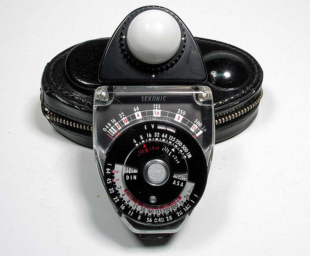 SEKONIC STUDIO DELUXE: L-28cTHE CAMERA: Beautiful sample of the Sekonic Studio Deluxe model L-28c from 1966-1970. Mine is in full working condition and accurate within 1/3 stop of my brand new Gossen Digisix2. It has a wonderful leather case with the Lumidisc and reflective disc in a sleeve. The meter has the default High Slide for outdoor readings in it's slot on the back. It reads in Incident and reflective modes. FIXES: MANUAL: Here is an operators manual for a similar model [Camera Home] [SLRs] [Rangefinders] [Viewfinders] [TLR] [Meters] [Gallery] this site owned and maintained by R.Wrede,© all rights reserved. |