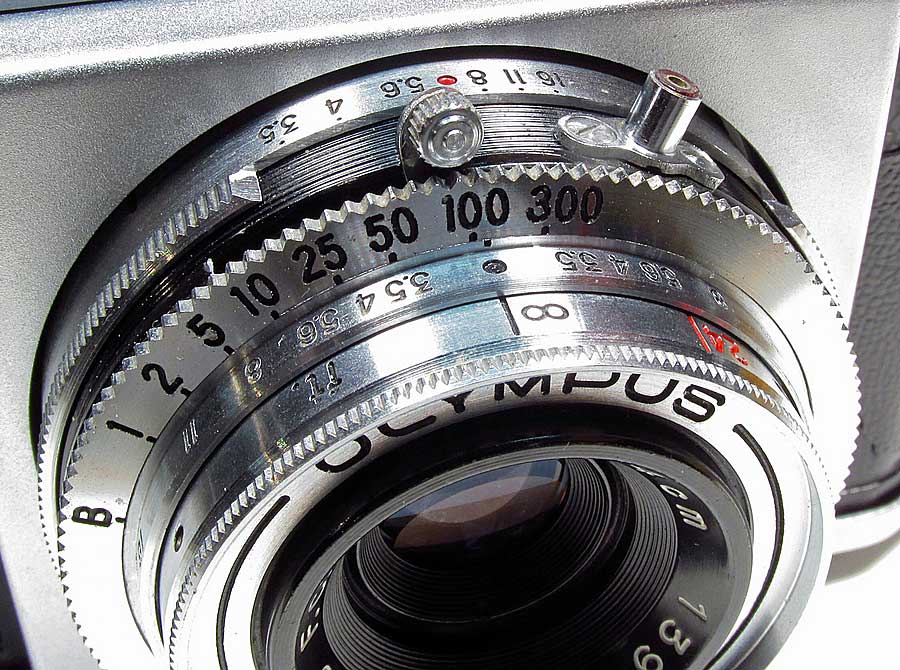 OLYMPUS 35 IVaTHE CAMERA: The Olympus 35, I've wanted one of these for a long time, usually rather spendy, I got this one at a price I couldn't pass up. There are several models of the original 35 starting in 1949 with the model I, (model II was a prototype that never went to production) the III, IV, IVa, (two styles of the IVa) IVb and a V. The spotting features for this model made in 1954 are the 1/300 shutter speed and this is a second version with the flash sync on the lens top. Mine has the <EP> on top meaning it came from an American military (Exchange Post) PX in Japan, a nice added bonus. It has the Zuiko F.C. (6 element, coated) 4cm (40mm) 1:3.5 lens with the Copal B, 1-1/300 shutter. FIXES: I repaired the shutter and shutter arm from sticking, discovered fungus on the rear lens group and fixed that with a 50/50 mix of hydrogen peroxide and household ammonia and cleaned the viewfinder by unscrewing the rear eye piece and blowing and cleaning with a Q-Tip and cleaned exterior. MANUAL: [Camera Home] [SLRs] [Rangefinders] [Viewfinders] [TLR] [Meters] [Gallery] this site owned and maintained by R.Wrede,© all rights reserved. |
