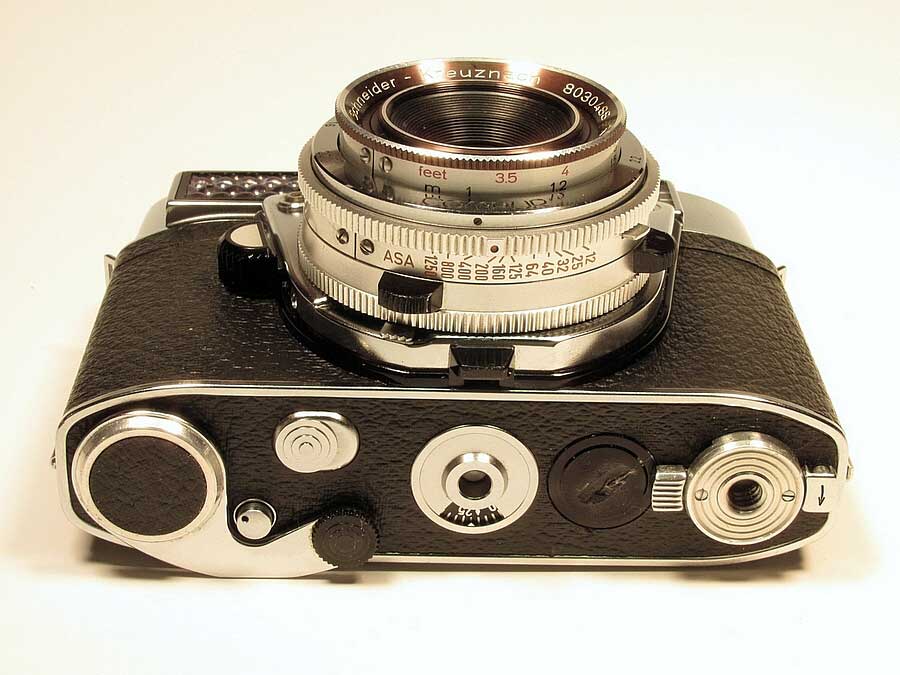 FIXES: You gotta love German cameras, no foam light seals! This has no light seals what-so-ever other than the double door and hinge grooves built into the door itself. Film ready after 50 years. I removed the top plate and cleaned the rangefinder optics and window glass and I figured how to adjust the infinity setting on the rangefinder. No documentation anywhere so I tried what I thought was the correct screw and got lucky. I polished up the chrome and gave the leatherette a bubble bath of Meguiar's Leather Foam. Here is a photo from this camera MANUAL: Kodak Retina IIF owners manual