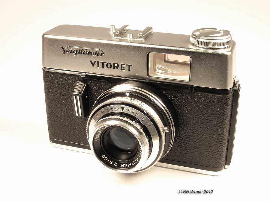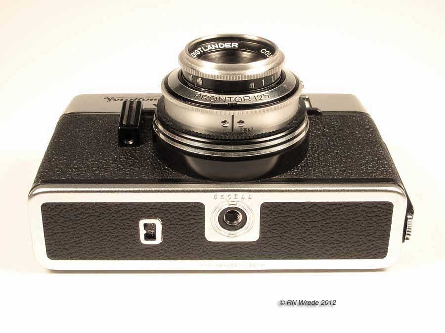 VOIGTLäNDER VITORETTHE CAMERA: I liked my little Vito II so much I thought I would get something similar. The Vitoret I have is called the "square" version, which ran from 1967-1971. 1961-1966 saw a Vitoret with rounder sides. It was produced as a quality yet affordable camera for the masses with a large viewfinder, simple yet effective lense/shutter system available in a 125 or 300 max speed shutter. MIne has the 125 max shutter speed but the nice thing is it has f22 aperture. It was purchased from eBay and advertised as near mint. They were right! it came with the original case and even the leather strap is not bad. who ever owned it must have bought it for some vacation and never used it again. Everything is clean and it works great. Mine must have come from Europe as it has meters on the lens rather than feet, gotta do some math..LOL as it has a viewfinder not a rangefinder so focus is scale set. Luckily as with my Vito II the depth of field is tremendous, something like 2.3 meters to infinity at f16 and 6 meters to infinity at f5.6! so the scale focus thing is no biggie. Took it on vacation last week, the viewfinder is big and bright, like looking through a hole with plastic over it, no smaller size objects, it does have frame lines but are way to the edges and hard to see with glasses on. This is I'm sure because of the 50mm lens, not 35-45 like on most other viewfinders and rangefinders I've seen. It's light as a feather and quiet as a mouse. The bottom of the camera is much more interesting than the top ...LOL... see below. FIXES: No fixes whatsoever. The light seals on this camera are basic tight fit metal on metal and flanges in deep grooves. Here is a test photo shot with this camera MANUAL: Voigtlander Vitoret owners manual [Camera Home] [SLRs] [Rangefinders] [Viewfinders] [TLR] [Meters] [Gallery] this site owned and maintained by R.Wrede,© all rights reserved. |