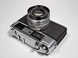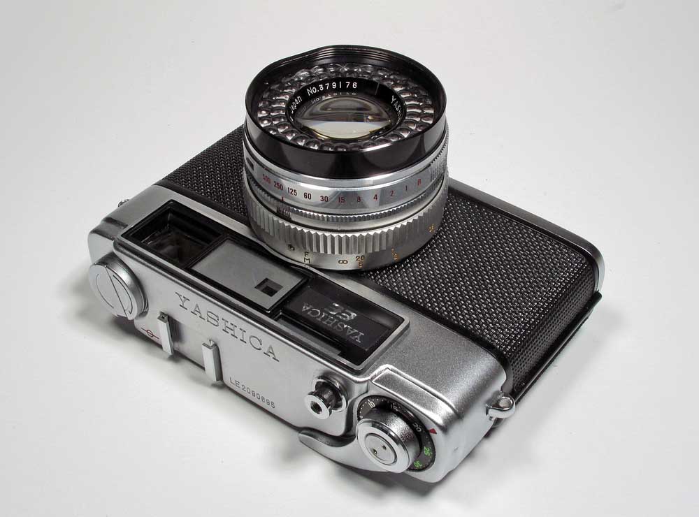 YASHICA EETHE CAMERA: Got this while on vacation at a St. Vincent Depaul's store for $4.99! It is from 1962 and has the desired Yashinon 45mm 1:1.9 lens. The Selenium cell for the light meter surrounds the lens. All shutter speeds work and the aperture blades work as they should. It has a (shutter priority) AUTO setting on the lens that adjusts the aperture accordingly. it is also manual mode operable. FIXES: I have taken the top plate off and cleaned the winding gears and rangefinder optics. I have a set on Flickr showing the cleaning. I have attempted getting the dent out of the lens filter ring but it is still visible. MANUAL: Here is an online owners manual