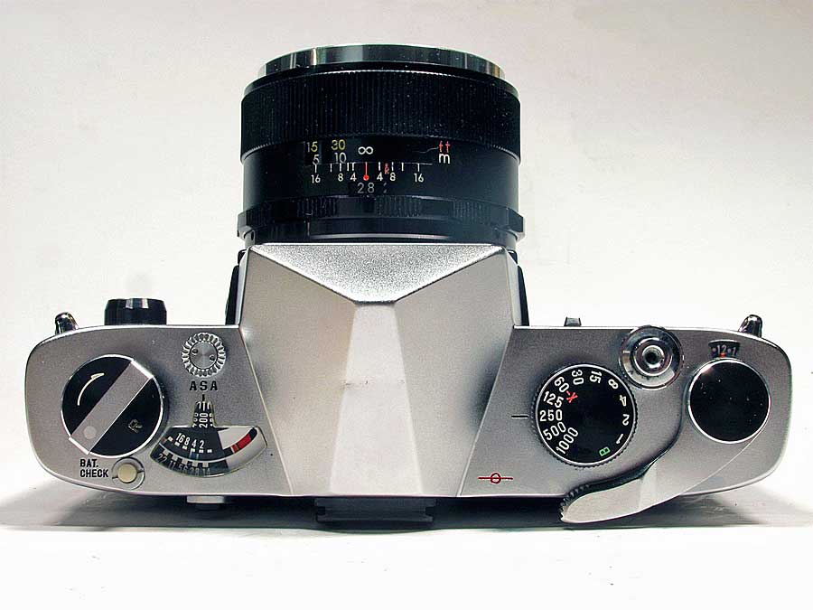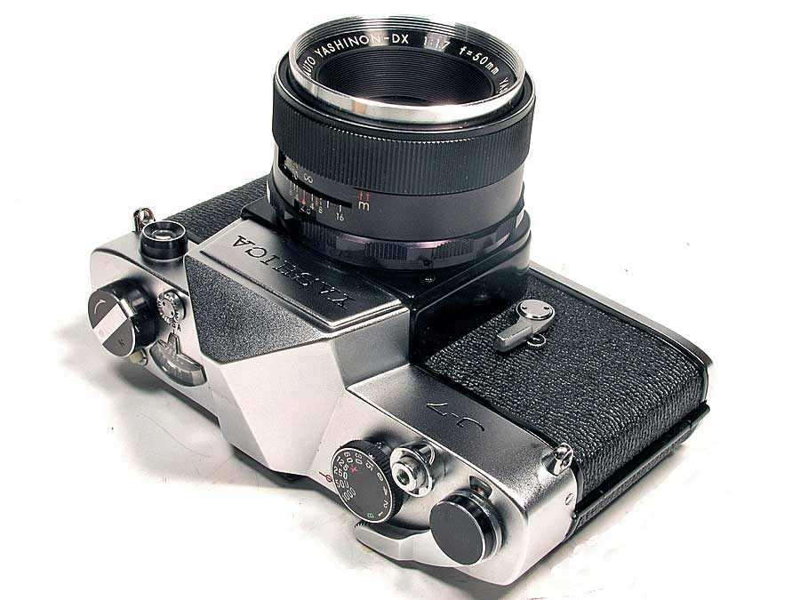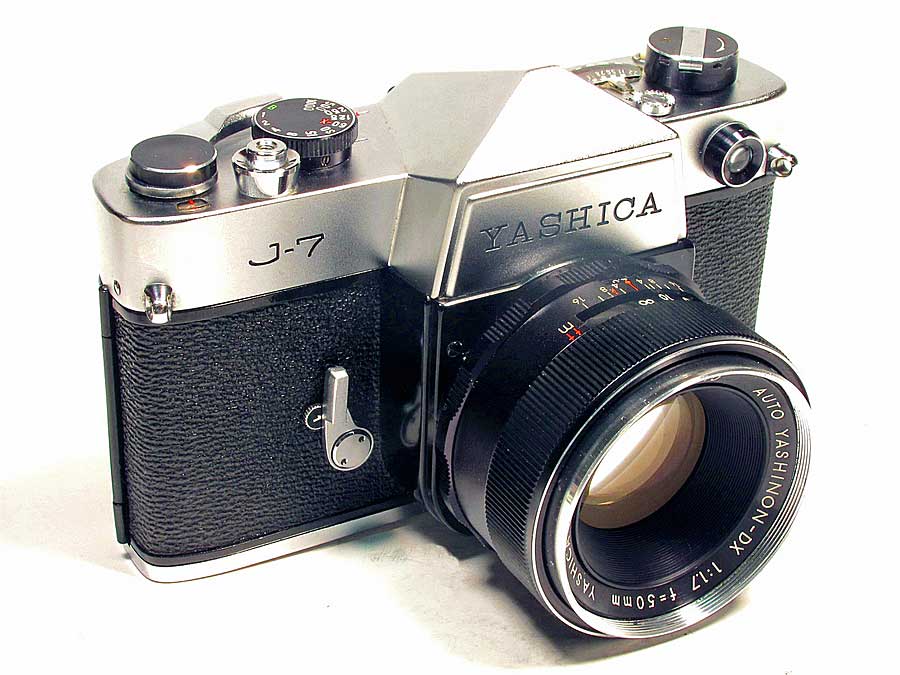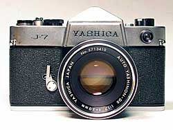 YASHICA J-7THE CAMERA: I just think this camera looks better every time I look at it. From 1968, this is the model J-7 with a working light meter and an original mercury battery to boot! It is a manually adjusted camera with the meter as a reference only. The shutter works without a battery. I repaired the loose lens over the CDS cell housing and cleaned it up is all that was needed. No light seals need to be fixed. There is one of the PC sockets missing however but that can be fixed later. The lens is some great glass and sparkles like new. The small dent area on top is due to Yashica's silly shoe attachment accessory that slides around the rear eyepiece and rests loose on top of the prism housing. After a while and with some jarring I'm sure there are thousands of these cameras out there with similar dents. The meter on top is the coolest thing ever... you set the ASA, the whole dark area with f/ settings moves accordingly, then as you adjust the shutter speed, the black area moves accordingly, so all you need to do is get the reading of aperture and set your lens and shoot. I did notice you need to point the camera down slightly if there is sky. Here is a photo taken with this camera MANUAL: Yashica J-3 manual very close to the J-7
