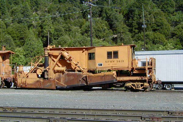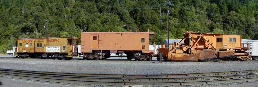 Pan shot of the snow removal equipment, still painted in Southern Pacific MOW Orange. |