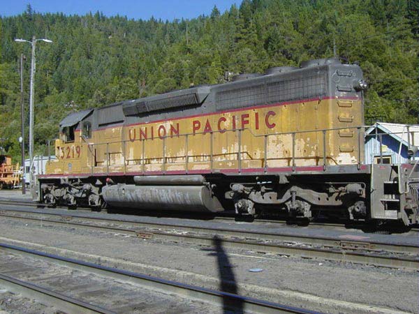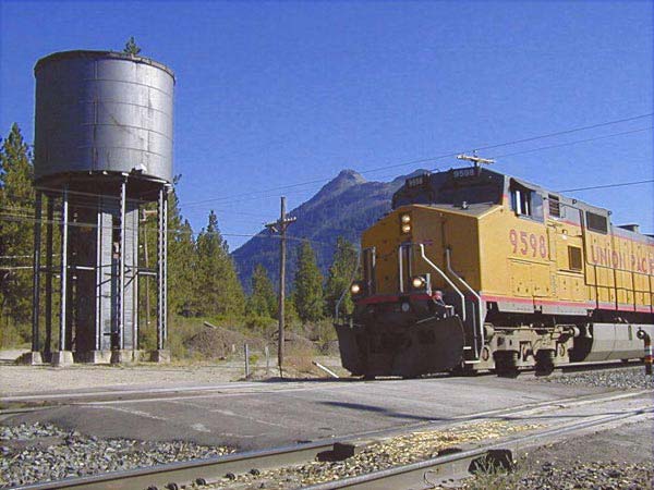 More evidence of this towns rich history, ironically a UP Loco sits waiting in front of the old tank with SP heritage. |