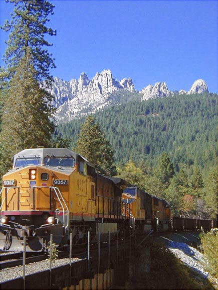 After a short while another train heading north chugs into the yard. We all jumped in the Jeep and drive to Black Butte and waited for it there. |