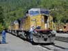 This old faded SD40-2, along with the Dash 8-40C are new to me, as there were only two helpers last visit to Dunsmuir and many times viewing the "Rail Cam" on Trainorders.com. |