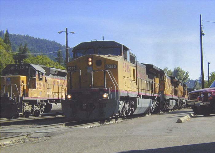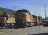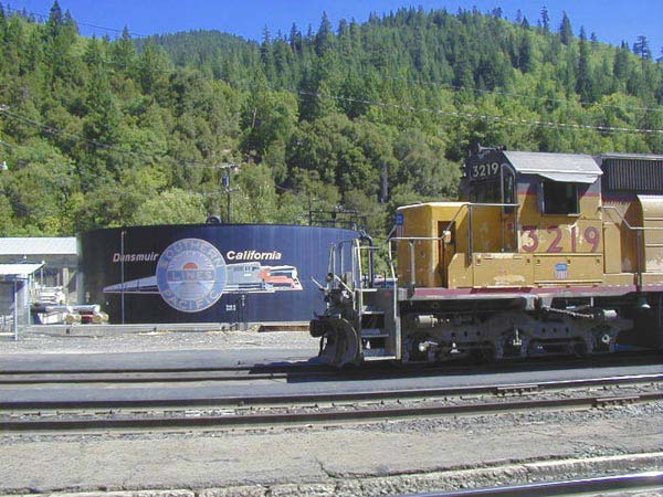 We arrive in Dunsmuir and immediately go down to the Yard to see what's up. A set of helpers with four locos is waiting their next assignment. The turntable is visible to the right of the lead helper unit. |