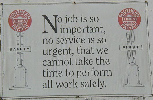 Evidence of a bygone era, this Southern Pacific safety pledge still hangs above the Amtrak Depot. |