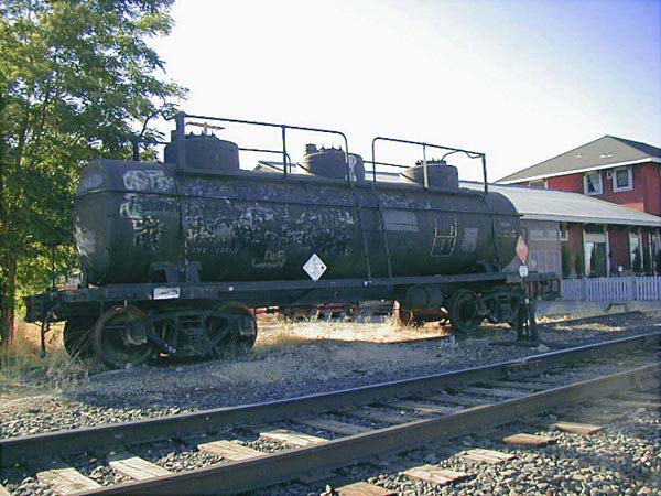 On our way home from the days events, we stop by Grenada to see an old triple dome tank car. I was surprised to discover it was sitting static on it's own tracks in front of the old depot (red building to right) which now appears to be a residence(?) |