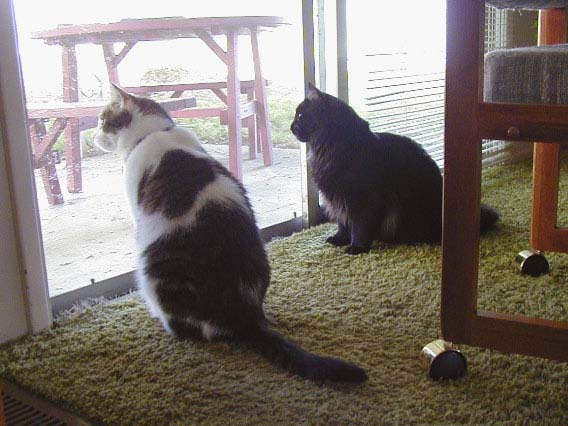 A couple months ago my Mom went away. She would sit and hold me each night and tell me over and over again that she was going to come back for me but I guess I forgot that while she was gone. She was gone for 5 weeks during which time I missed her terribly. I cried a lot and was very depressed. Then one day a couple weeks ago she came back! The thing is I wasn't sure it was her. She brought a friend with her and since I am scared of strangers I cowered in the corner. She tried to pick me up but I hissed at her. She and I are still trying to decide if it is because I was really really angry with her or that I didn't remember her. Personally I have to say that I was very mad at her. How dare she leave me behind for that long, me her fuzzy pride and joy! I watched as she moved her belongings out the door. And then she left again. I couldn't believe it. She was gone all that time and then only came back for an hour? Boy was I mad! The next morning Mom was back again but I would have nothing to do with her. I would show her! But she wasn't listening to me. She picked me up, I was hissing and growling I might add, and shoved me into my carrier. And then of all things she took me to the doctor where they shoved a pill down my throat! I wasn't even sick!! Then Mom and this stranger I later learned was named Richard and I all piled into the front seat of a big, noisy truck. Mom looked at me and exclaimed, "Well, here we go, off to our new home." Our new home? The pill they gave me started making me feel tired so I laid down but I never could quite get to sleep. After a couple hours I was feeling very relaxed and then Mom got this dumb idea to put this big, blue, body-binding collar thing on me (a harness). She kept saying it was for my own good so I could go potty outside while we traveled. Oh yeah, right, like I would want to ever set these precious feet on the ground. Well, there was no way I was letting her put that straight-jacket on me! I snarled and growled and actually bit Mom really hard. So hard that she cried and started bleeding. I really am sorry about that but I was scared and confused. Mom says the noises I made that day sounded like I was auditioning for a part on "Wild Kingdom". We did drive through Omaha.... heehee ![]() Illinois Farm Land It took us 5 days to drive from Ohio to Oregon, our new home. Now you all know how much I love to eat but I scared Mom by not eating a thing for the first 2 days. And I didn't drink any water for the first day and a half either. She really thought I would die before I got to our new home. I fooled her though. I was just making her sweat after all she had put me through. I never did eat any of my kitty food for the whole trip. I knew my mom wouldn't let me starve. She always spoils me and knows my favorite things so I spent the rest of the trip munching on cheese off their hamburgers and nibbles of roast beef off their sandwiches. Yum! I have to admit that I am not a morning kitty so getting started each day was no fun. I liked to hide under the bed, especially when that stranger, Richard, was wandering around. One day, no matter what they did they couldn't coax me out. I was tired of traveling. Rock Springs, Wyoming looked like a good place to stay to me but they had other plans. They actually lifted the mattress and springs off the bed frame and Mom scooped me up. Scared me half to death to have my hiding place just lifted up. ![]() Interesting rock formations just west of Cheyenne ![]() Snake River Canyon And then this other beast, this furry black thing they call Kitty. You should see the nerve this guy has. He drinks from my water dish and he ate several of my toys! I mean he literally chewed the tails off several of my mice and swallowed them. He and I have come to growls several times. I have to watch out though, he has very sharp nails and likes to take a swipe at me every once in a while. ![]() The boys birdwatching and enjoying some sun. Today we had a show down. Kitty and I sat and stared at each other for 30 minutes, 18 inches apart. Mom kept checking on us and laughing. I don't know what was so funny, this is serious stuff here. So I am adjusting and Mom is slowly unpacking all her stuff and grumbling that maybe Richard was right and she has too much. But don't tell him I said that or she may put that harness thingy on me again. ![]() My favorite hiding place