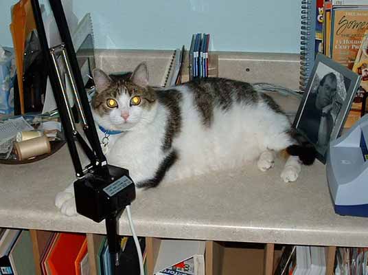 I turn 13, this year on August 10, 2005. I have been living in Oregon for 4 years now and have adjusted very well. I am still a very healthy boy. My mom spoils me every chance she gets. Unfortunately, that beast Kitty is still around. There for a while he did everything he could to scar my “beautiful face” (Mom’s description, and who am I to argue?). He would attack me while I was sleeping and scratch up my nose. But he seems to have finally accepted that fact that I am NOT leaving. Lately, he has taken to sleeping in MY bed, the nerve!!! I always go and tell on him and Mom goes in and swats him on the butt and makes him move. HeeHee